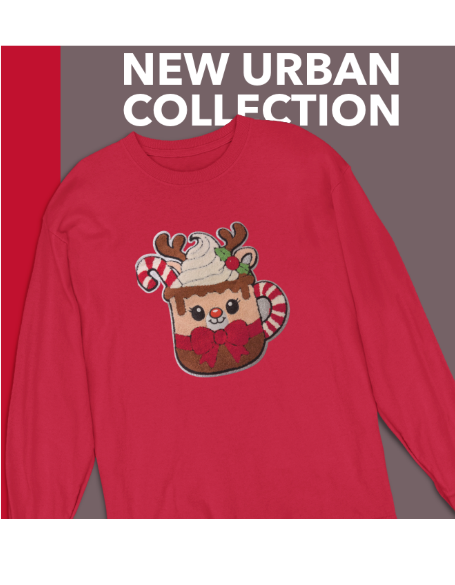 Brighten up your day with this Holiday Themed long sleeved t- shirt. It has this cute reindeer shaped cup design on the front. It comes in red and is made of 100 cotton with a crew neck. This shirt is great for wearing with a vest or jacket. It is lighter than a sweatshirt but warm and not to hot or bulky. Get yours today!